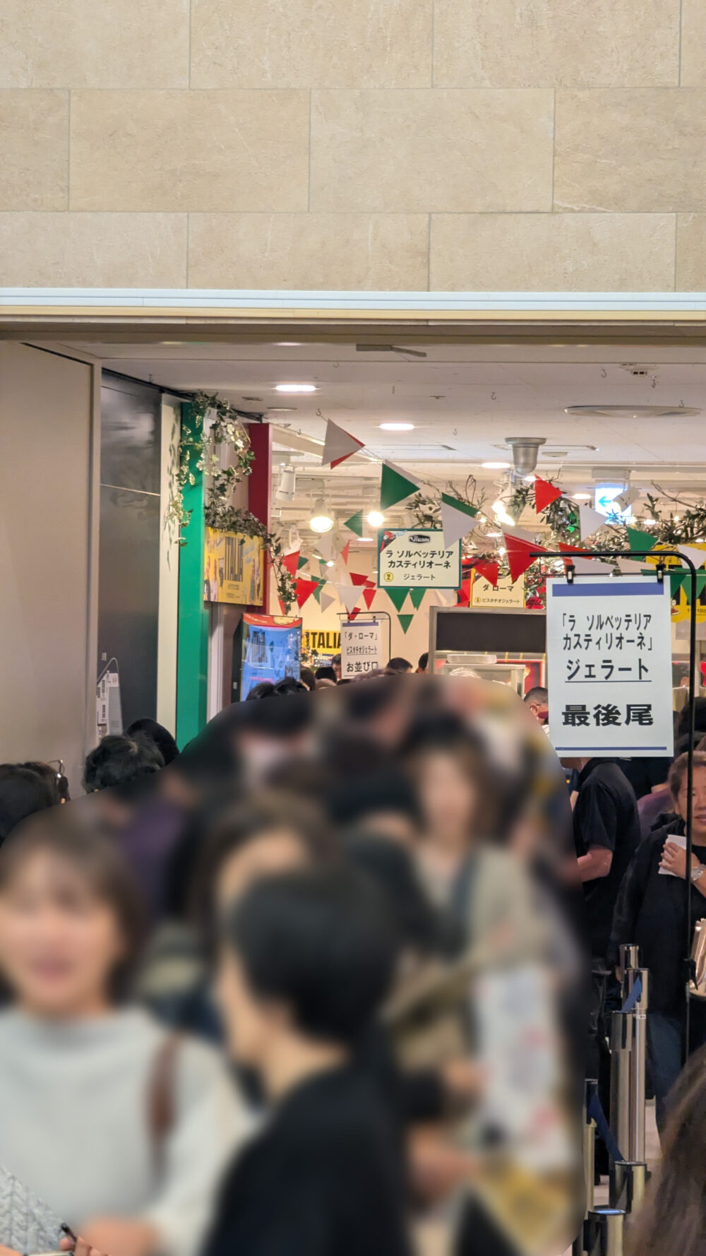 ちなみに…というか毎度そうなんですけど、催事展ではジェラートやアイスクリームが激混みします。今日は平日の水曜日ですけど、本場イタリアから来た『ラ ソルベッテリア カスティリオーネ』は開店30分で折り返し列ができるほど人気でした。土日は45分ほど並ぶことを覚悟してください。
