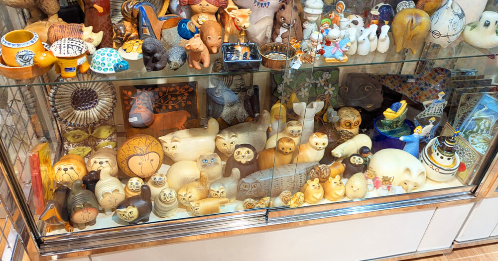 また、ヴィンテージグッズもたくさん揃っていて、特にリサ・ラーソンの様々な置物が揃っているのは圧巻です。