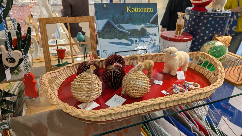 意外と売れていたのが交通安全グッズ。光が当たると反射するヤツですが、ムーミンやリサ・ラーソンのキャラクターたちが使われていて良いですね。ヴィンテージ製品は数万円するので手が届きにくいですが、こちらは1000円前後。お土産にもいいですね。