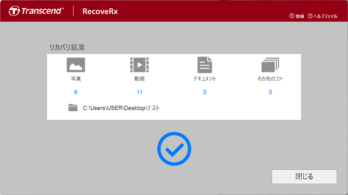 暫くすると復元が完了します。保存されたファイルを覗いてみましょう。