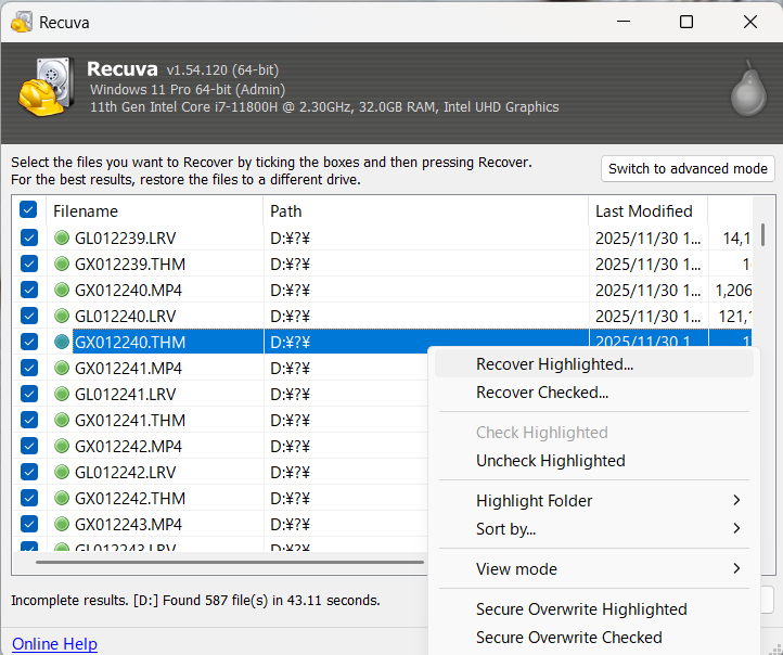 - 無料復元ソフト「Recuva」でデータを修復できた