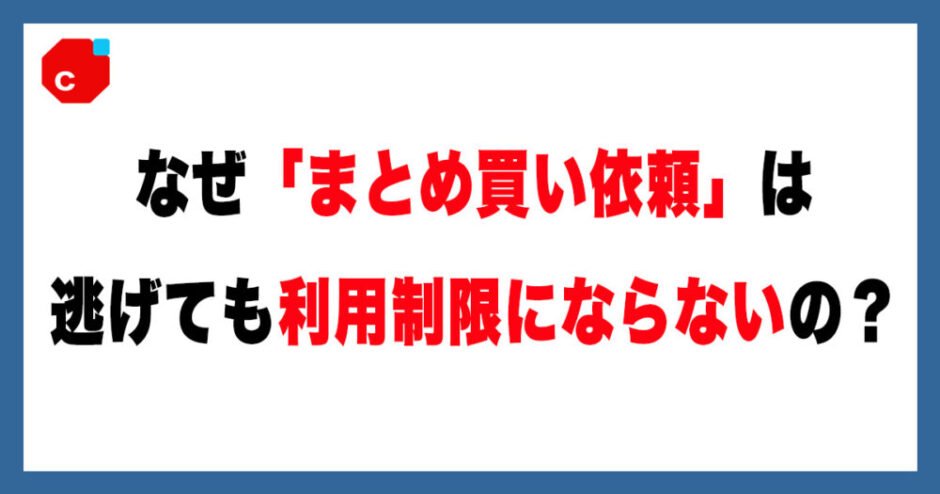 表向きは『誤解を防ぐため』ですが、裏を返すと悪質な出品者が後出し条件を仕込んでしまう可能性があります。この状態では「購入しない利用者=悪い」と断定できません。そのため運営は、まとめ依頼に対して強制購入やペナルティを設定できないのでしょう。