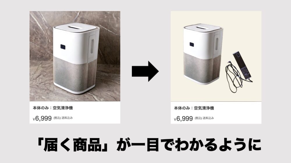 - 「本体のみ」の場合、何が含まれるのか記載する