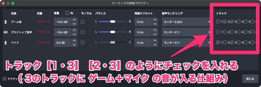 補足:【配信と録画を同時に行う】方は少ないと思いますが、同時に行っても録画ではトラックが分かれて収録されます。