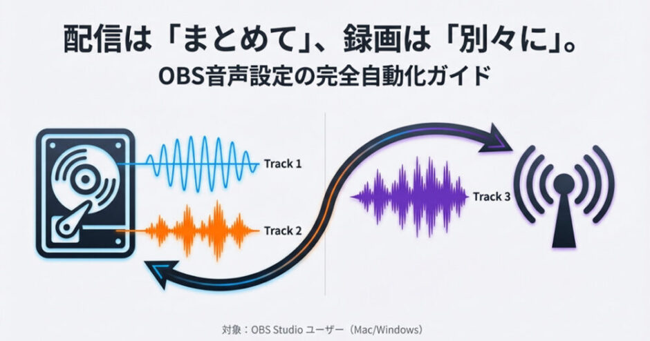 【初心者向け】OBSで録画は別トラック、配信は音声をまとめる設定方法